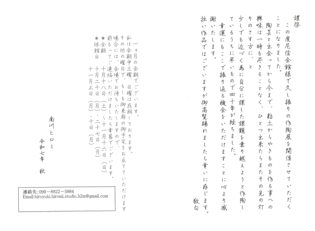 ☆光風会京都 工芸部の南川ヒロミさんの個展の案内です☆